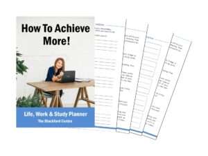 - ‘How to Achieve More!’ Planner. It contains forms for self-discovery and vision, a 12-month goals’ planner, a study plan and scheduler, study tips,